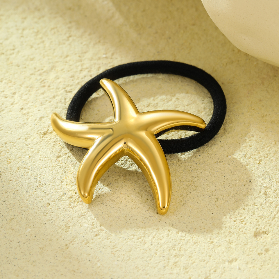Rarely-seen stainless steel shell sea star headpiece in an arc shape, with 18k gold hair string and metal hair band headband