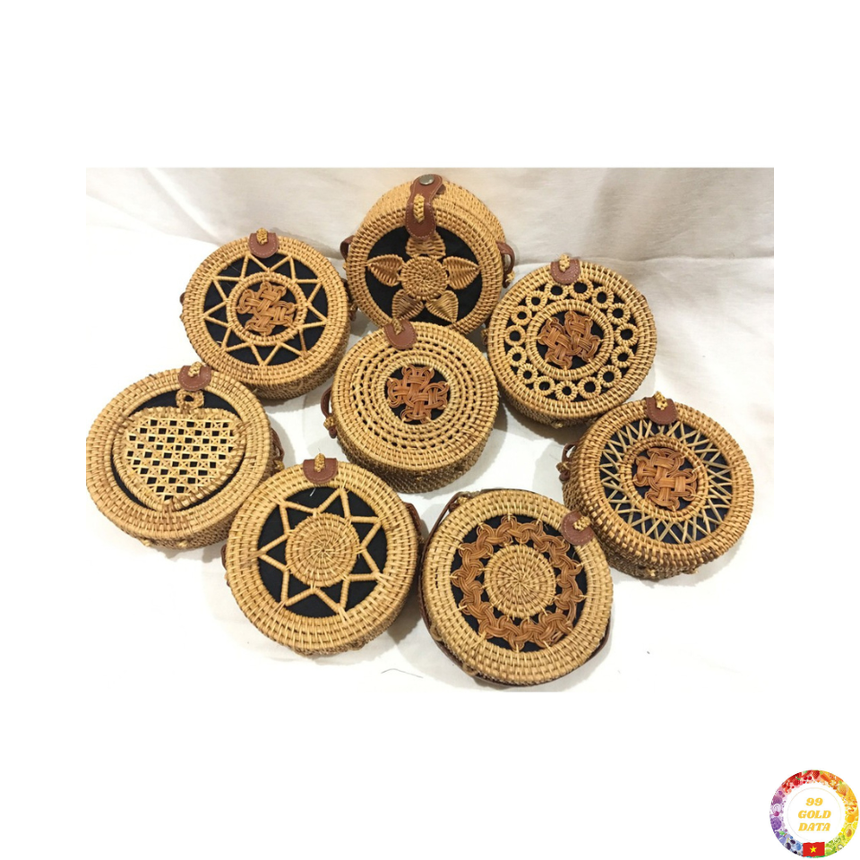 Rattan Bag Handmade Vietnam Fashion Tote Eco Friendly Round Handbag for Summer Travel Use