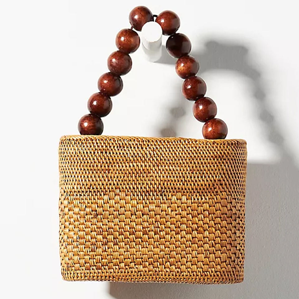 Rattan Bag With Wood Beaded Handle, Beach Bag New Trend 2021 Handmade in Vietnam