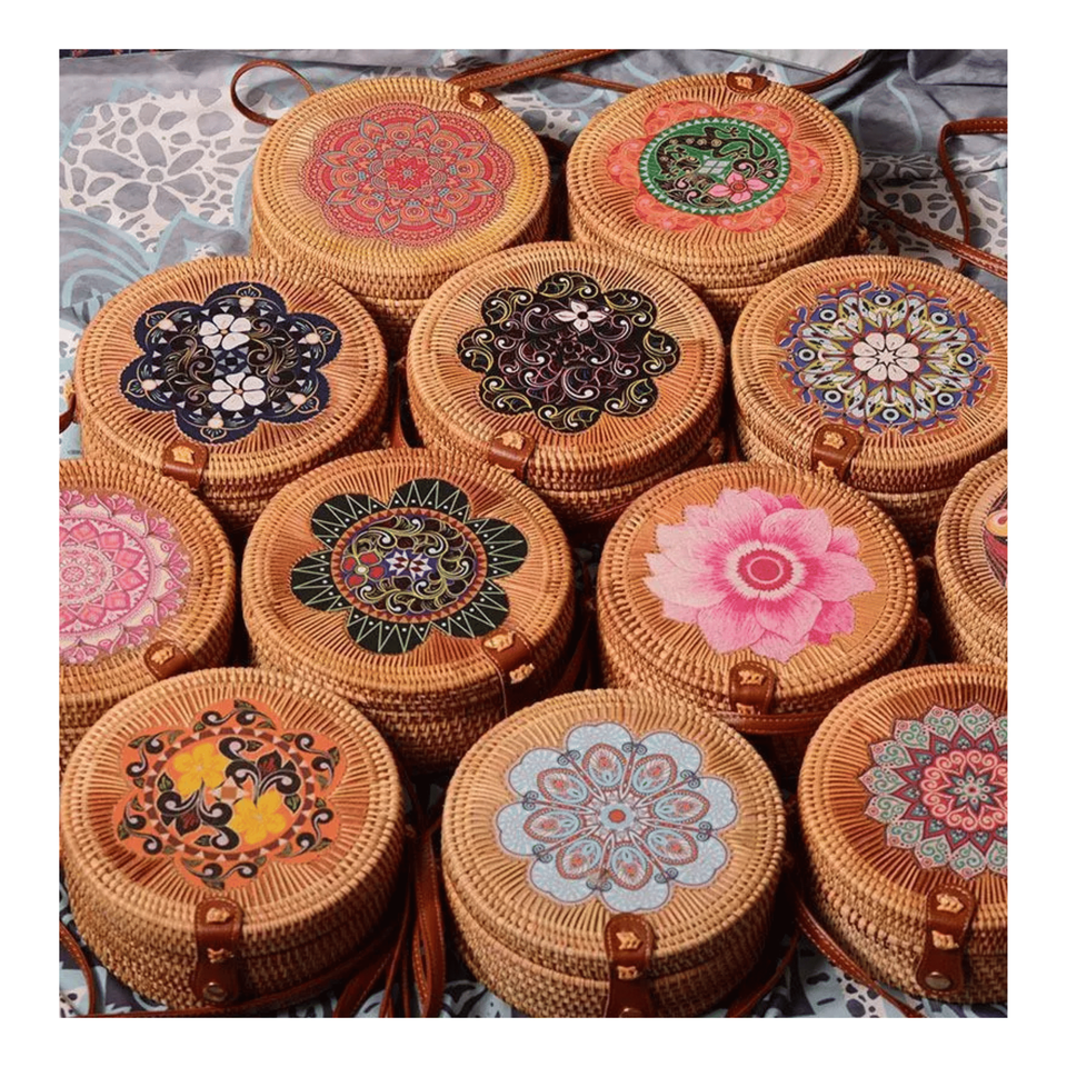 Rattan Bag with Mother of pearl Woven Natural Cane Handbag for Resort Display and Travel Vietnam Origin