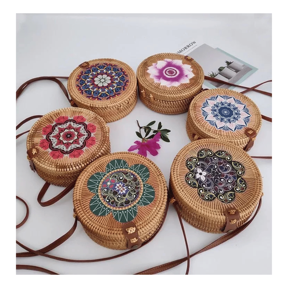 Rattan Bag with Mother of pearl Handmade Wicker Shoulder Handbag for Premium Summer Style Vietnam Origin
