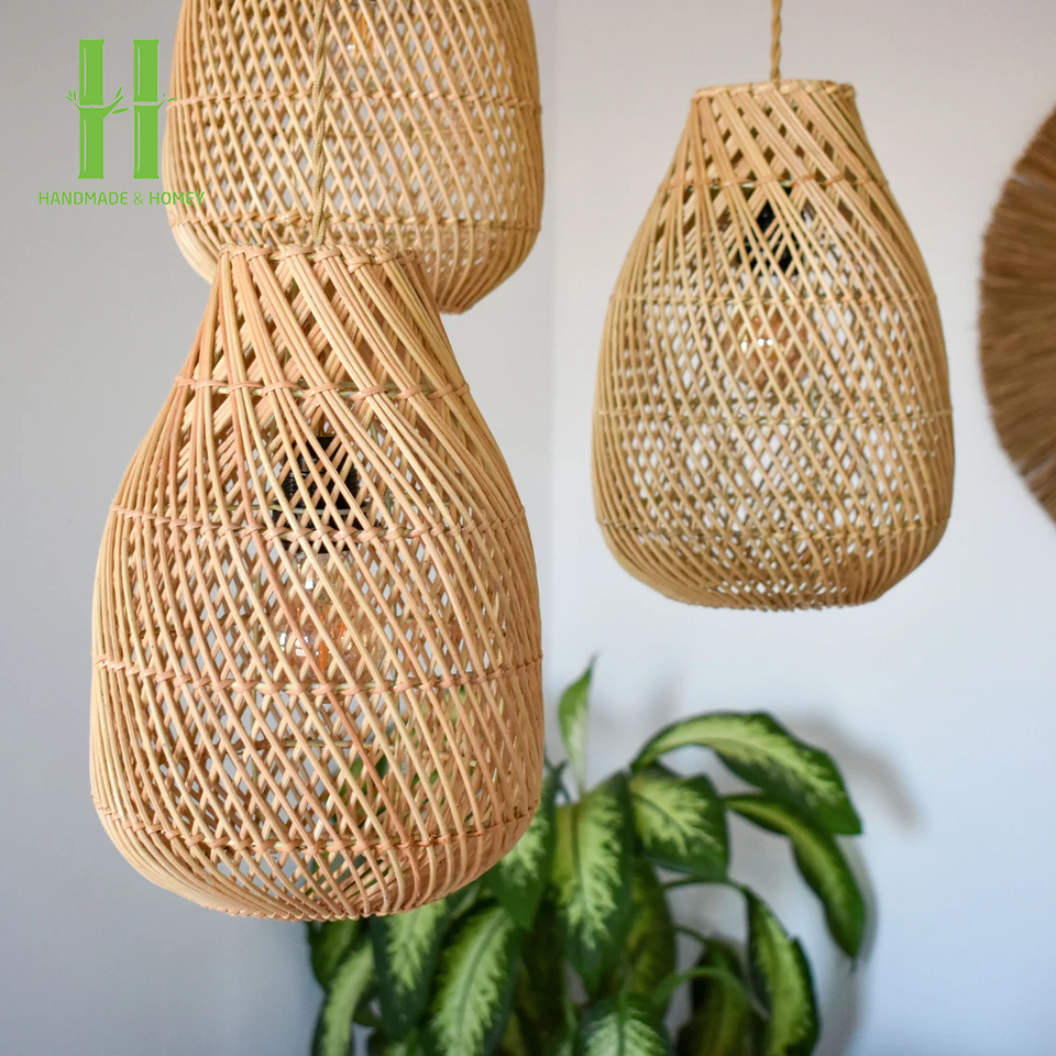 Rattan Bamboo Pendant Light Chandelier Eco-Friendly Indoor Modern Hanging Decorative Natural Shade Handmade Weave Wicker Home