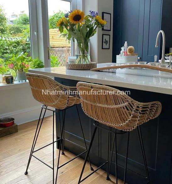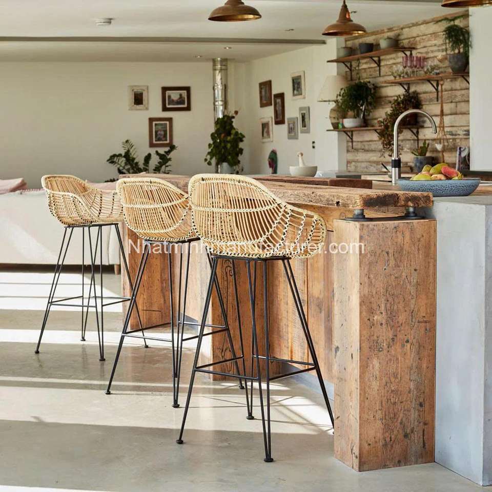 Product name:Rattan Bar Stool,Natural rattan chair with iron frame
