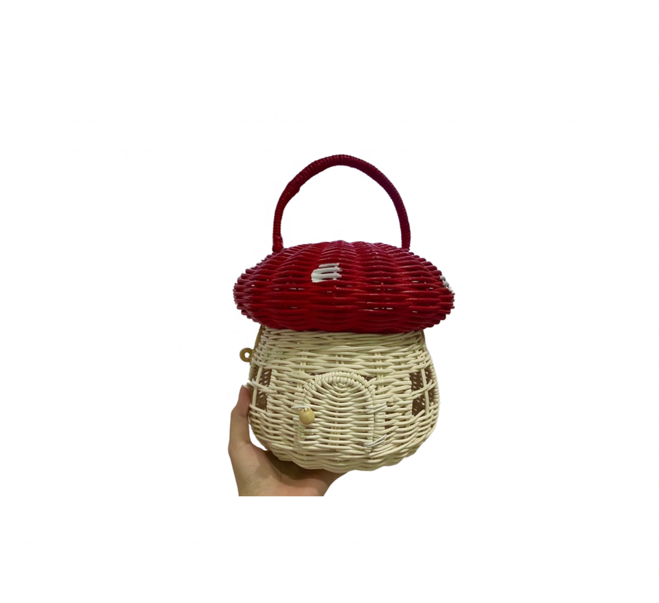 Vietnam Rattan Basket Mushroom Basket for Picnic Hamper Storage Bag Beach Straw Storage Organizer Box