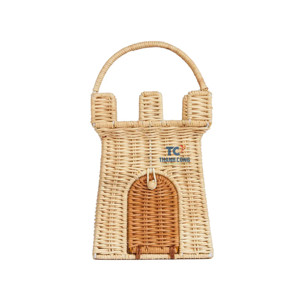 Rattan Castle Bag Natural Woven Castle Storage Basket for Kids Toy Playing Room Decoration Kids Basket Nursery Decor