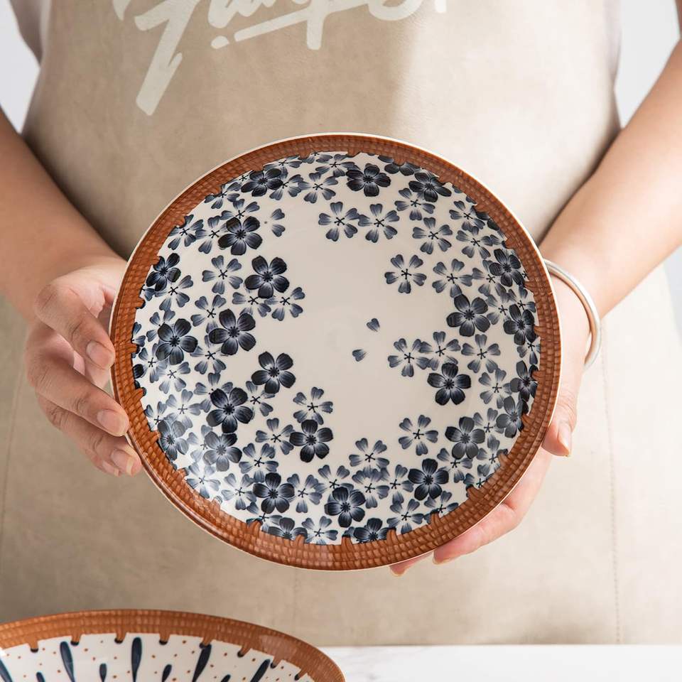 Rattan Ceramic Salad Mixing Bowl with Handle Porcelain Fruit Ramen Soup Serving Bowls Kitchen Accessories