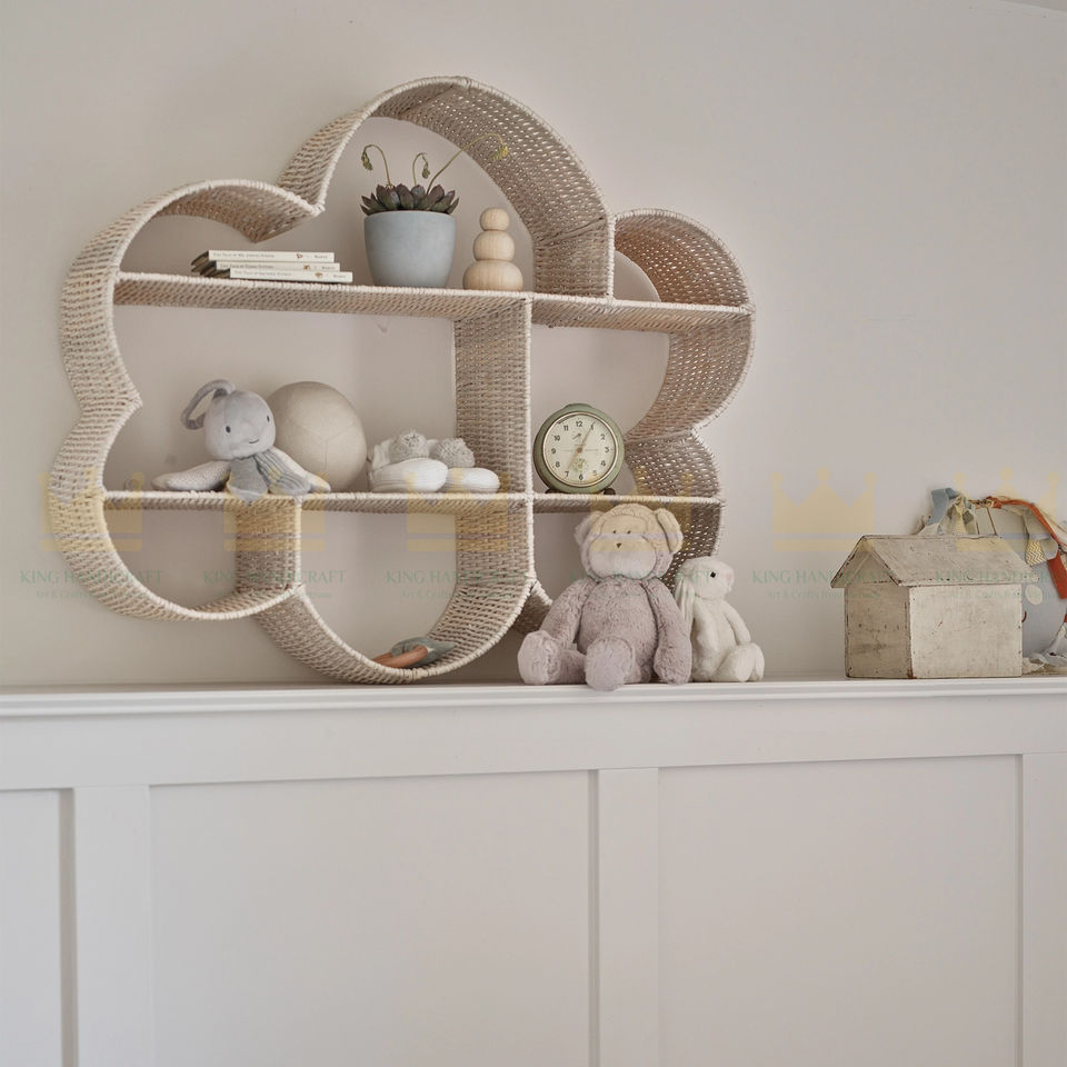 Rattan Cloud shelf Made from rattan Neutral colour to suit any little room for books, blankets and toys