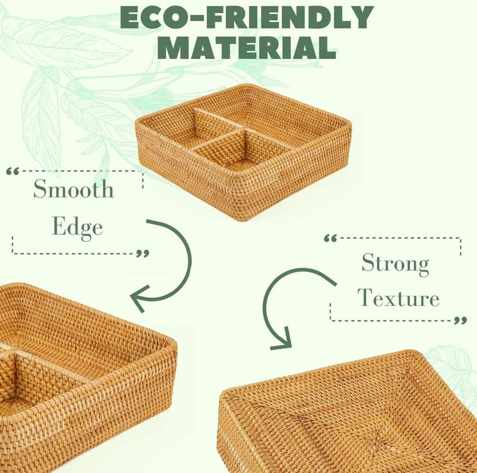 Rattan Divided Basket with 3 Compartments: Wicker Storage Cubes and Toilet Paper Organizer for Bathroom Brown Square Design