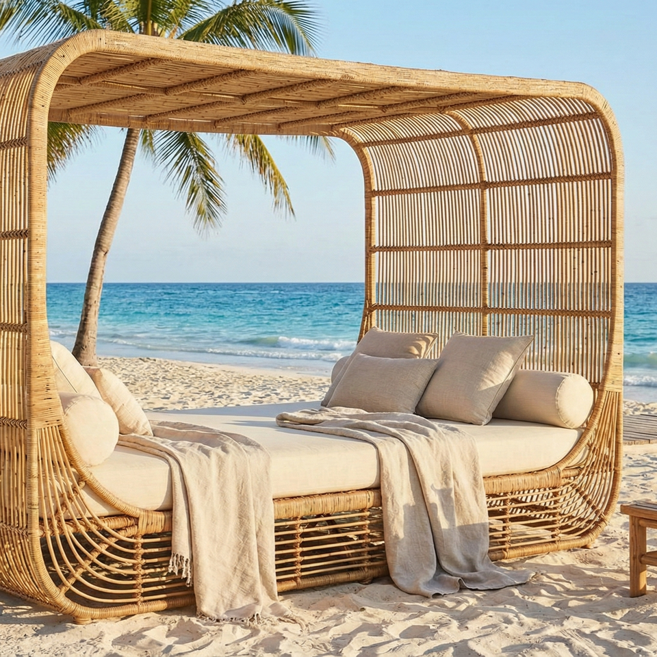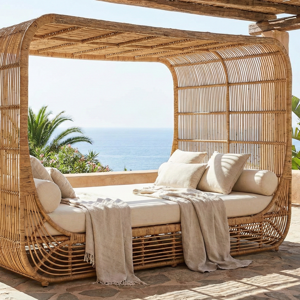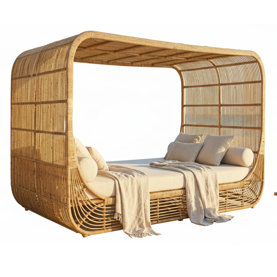 Rattan Durable High Quality Contemporary Sun Lounger Day Bed Eco-Friendly for Villa & Hotel Outdoor Use