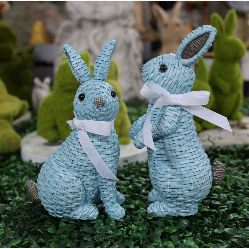 Rattan Effect Rabbit Easter Ornament Resin Handmade Indoor Decoration For Home Garden Kids Room