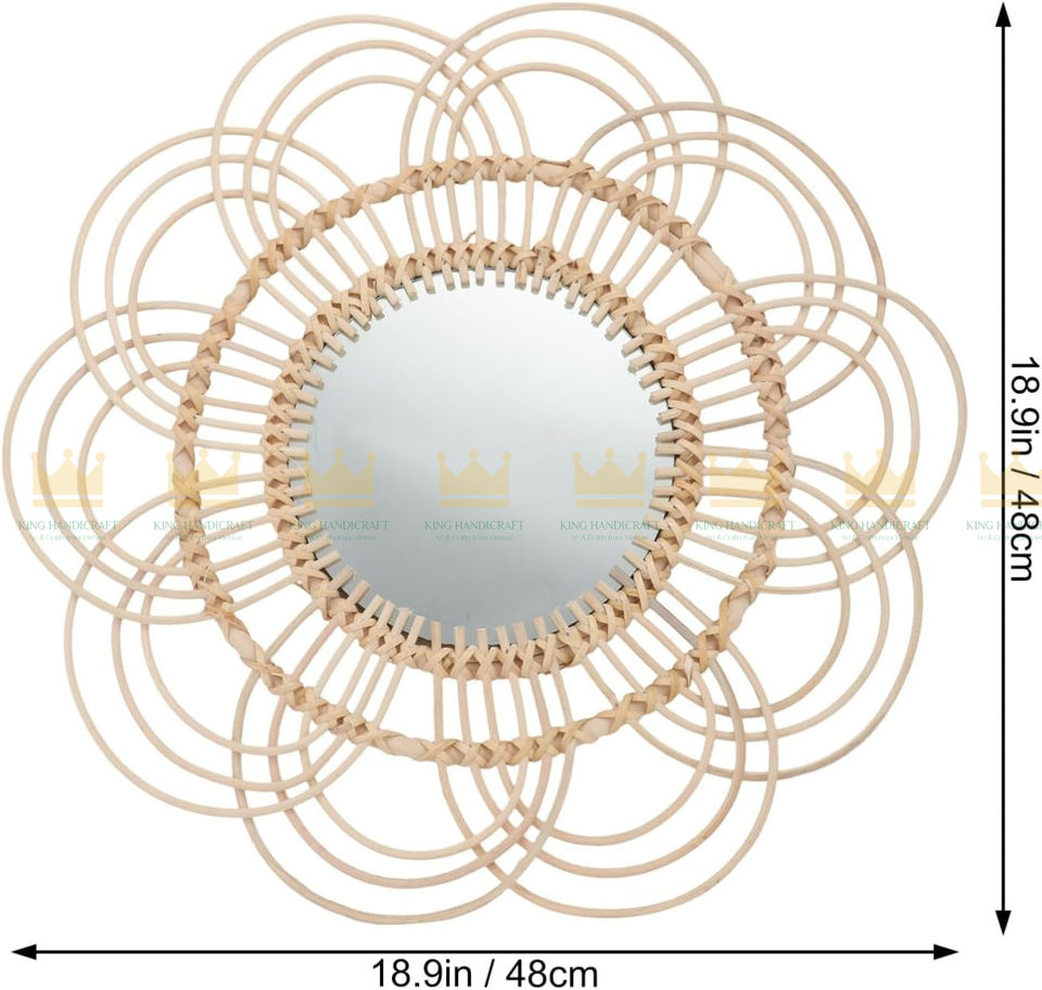 Rattan Frame Hanging Wall Mirror Decorative Nordic Wicker Dressing Makeup Mirrors Glass Farmhouse Wall Decoration