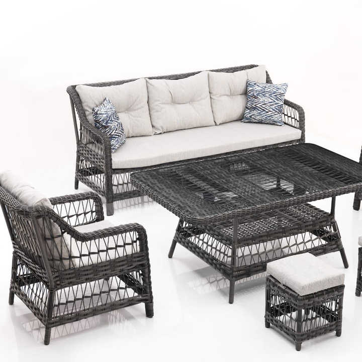 Rattan Garden Set Outdoor Seat Dinning Table Picnic Table and Bench Beer Park Metal Painting Customized Wood Frame Time
