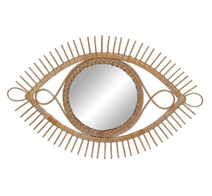 Rattan Handicraft Wall Mirror Frame Wall Hanging Decoration Eye Art Decor for Living Room Bedroom Rattan Mirror Frame