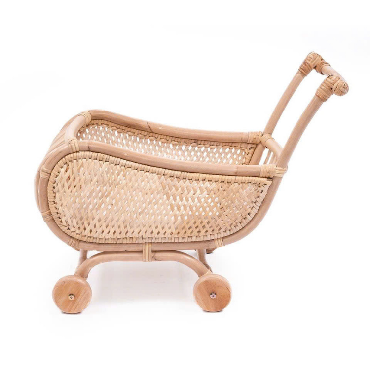 Rattan Handmade Doll Carriage Pram Eco Friendly Baby Toy Wicker Stroller for Girls Room and Gift Display