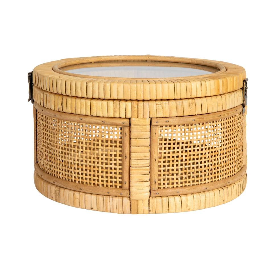 Rattan And Bamboo Nestable Round Storage With Glass Lids
