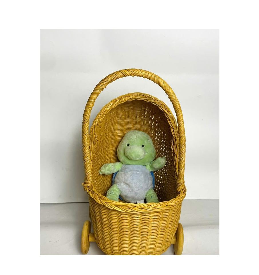 Rattan Nursery Toy Stroller /Handwoven Doll Pram/ White Rattan Wicker Doll Carriage for Baby Room Furniture Wicker Gift Birthday