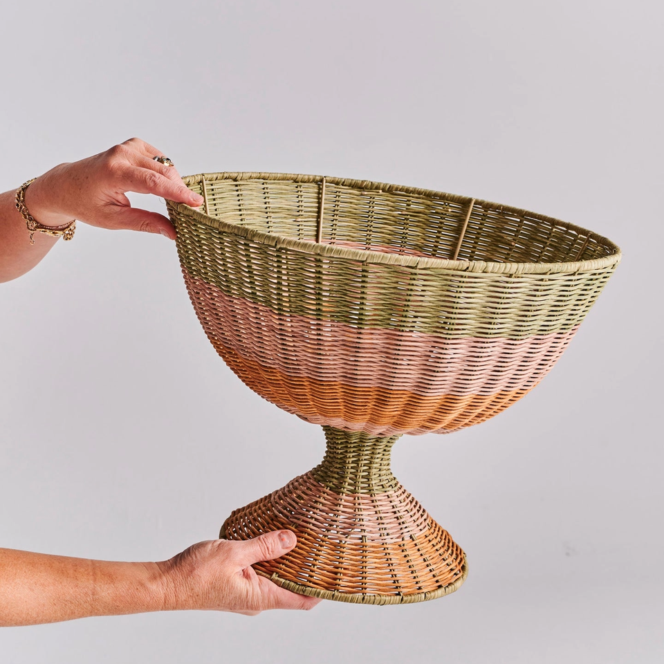 Rattan Pedestal Fruit Bowl Woven Display Stand Handmade Wicker Table Centerpiece Natural Rattan Serving Bowl For Home Decor