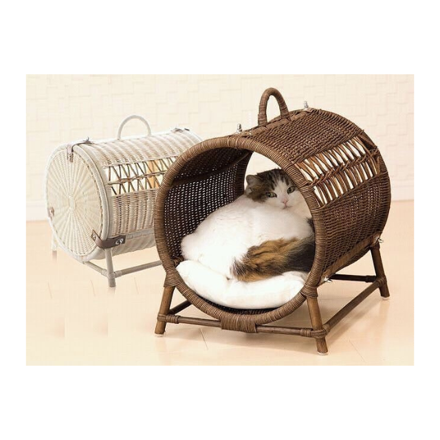 Rattan Pet House Bed for Cat Dog Handmade Woven Basket Soft Cushion Animal Nest Natural Eco Indoor Pet Furniture Use