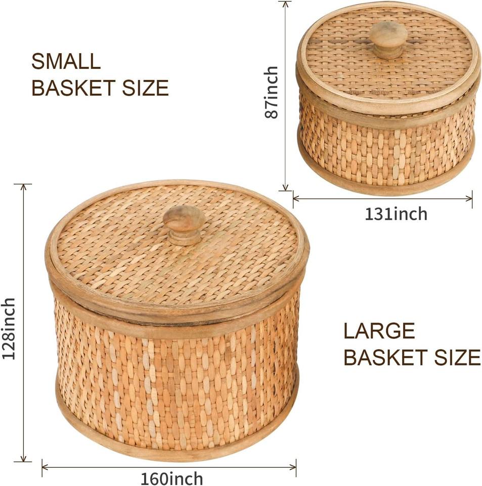 Name:Rattan Round Decorative Box Lid Set of 2 L: D16 x H12,8 M: D13 x H8,7