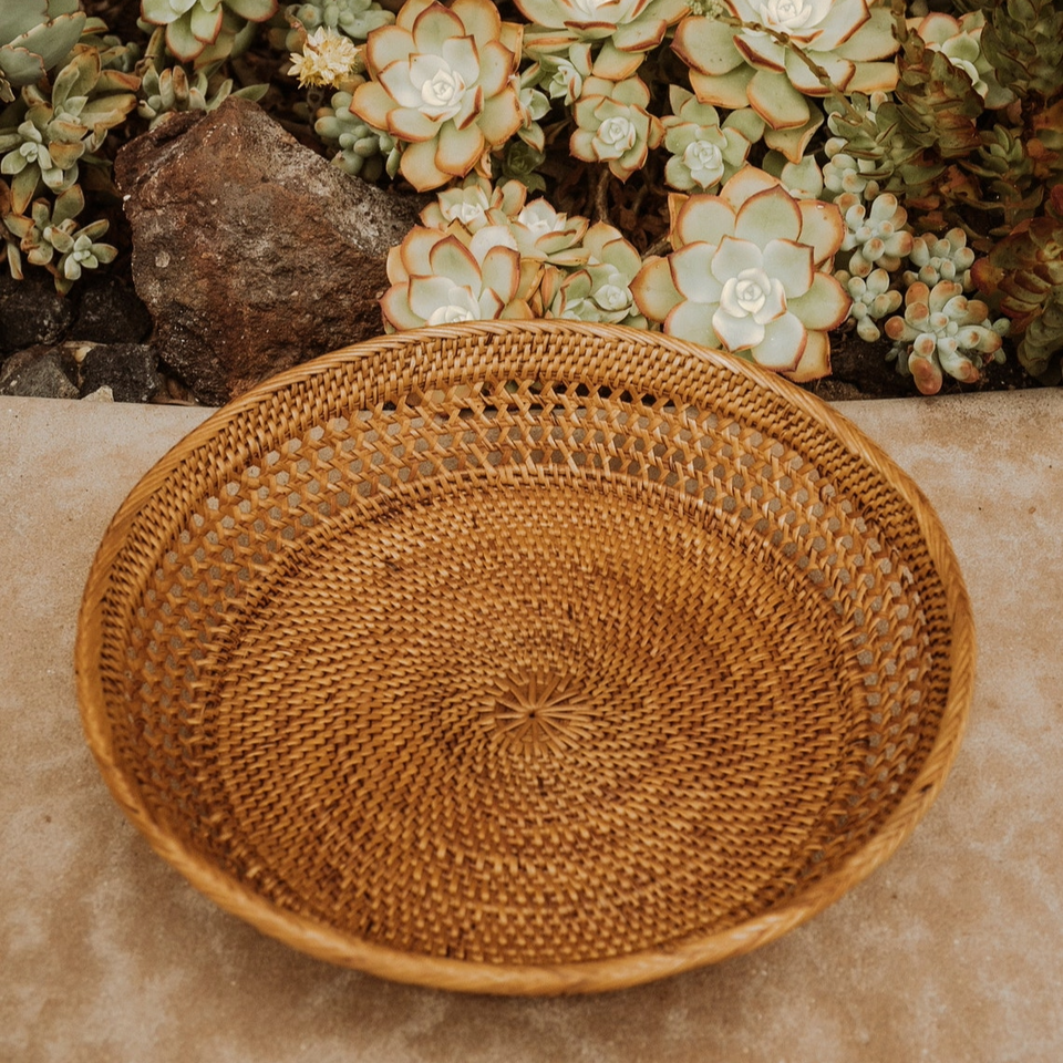 Rattan Round Fruit Bowl Woven Display Stand Handmade Wicker Table Centerpiece Natural Rattan Serving Bowl For Home Decor