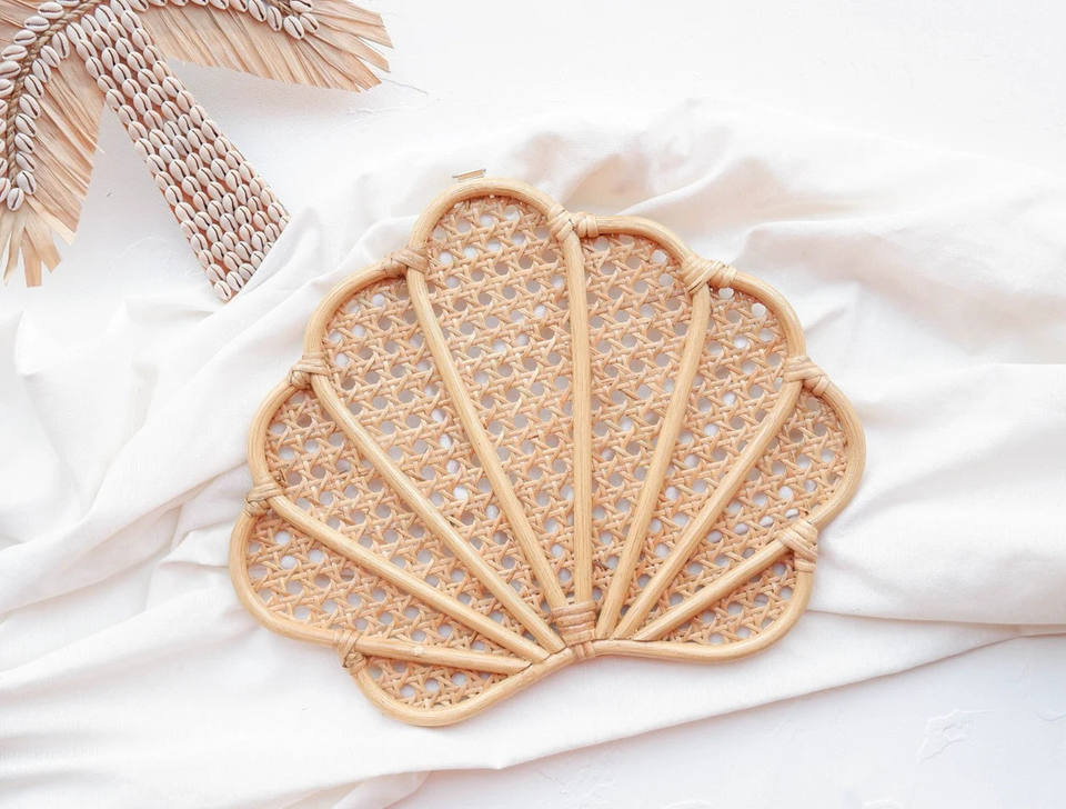 Rattan Seashell Wall Decor, Boho Rattan Nursery Decor, Shell Nursery Decor, Bohemian Shelf Decor, Beach Home Decor
