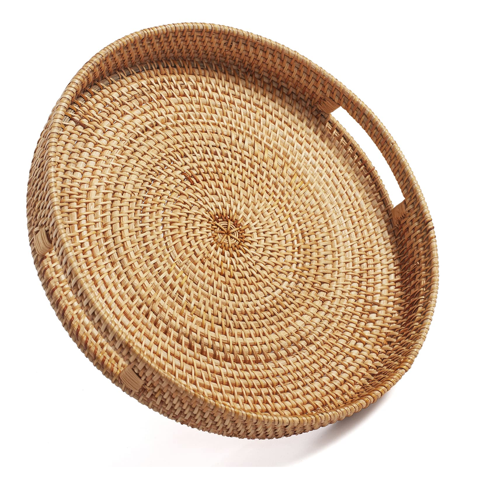 Rattan Serving Tray For Home Decorative Breakfast Drinks Tray Square Shape With handle Tea Cup Serving Tray