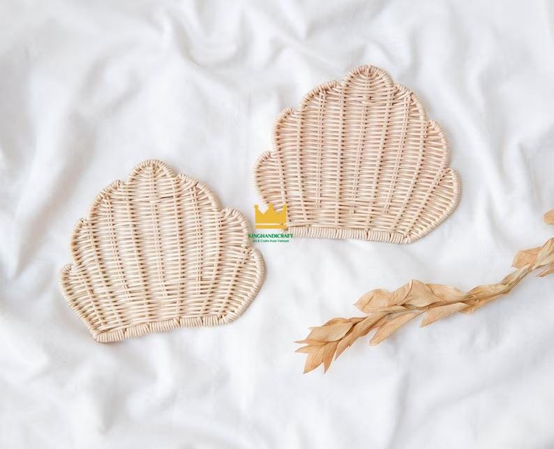 Set of 2 Rattan Shell Wall Decor for Kids Room or Home Decor Wholesale Wall Hanging