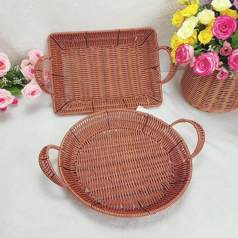Rattan Snack Plate Double Handle Rectangular Oval Serving Tray For Restaurant Fruit Storage Basket