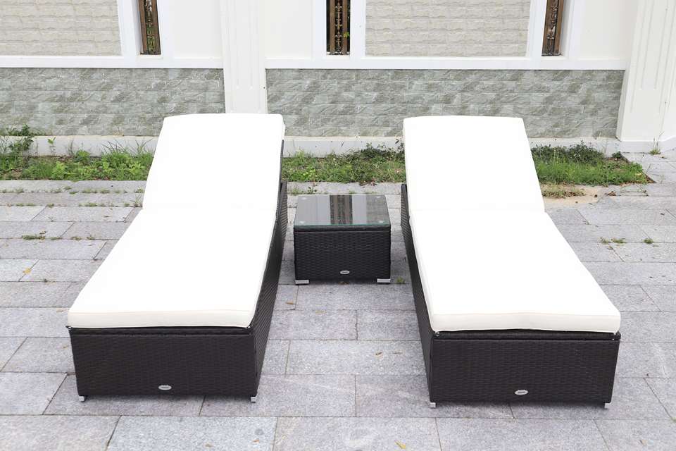 Rattan Sun Loungers Seat Cushion 8cm Wholesale Modern Sunbed Set Garden Furniture Outdoor Steel Frame Carton Packaging Item