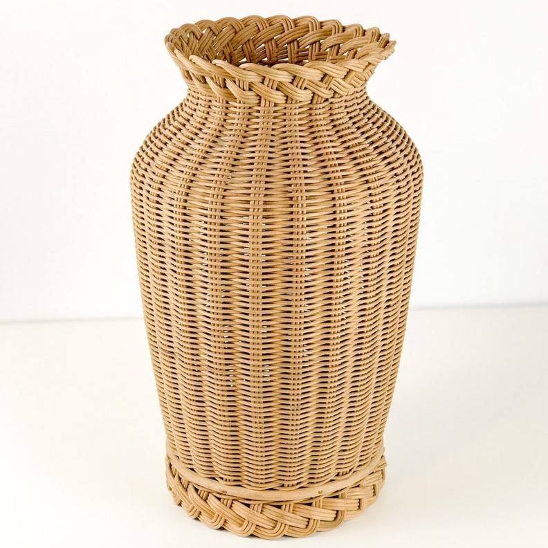 Rattan Vase, Vintage Ground Vase From Rattan, Basket Vase