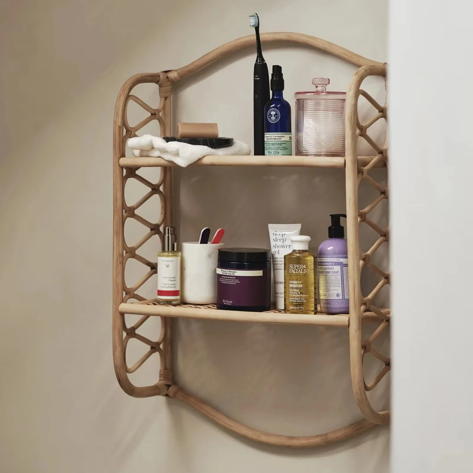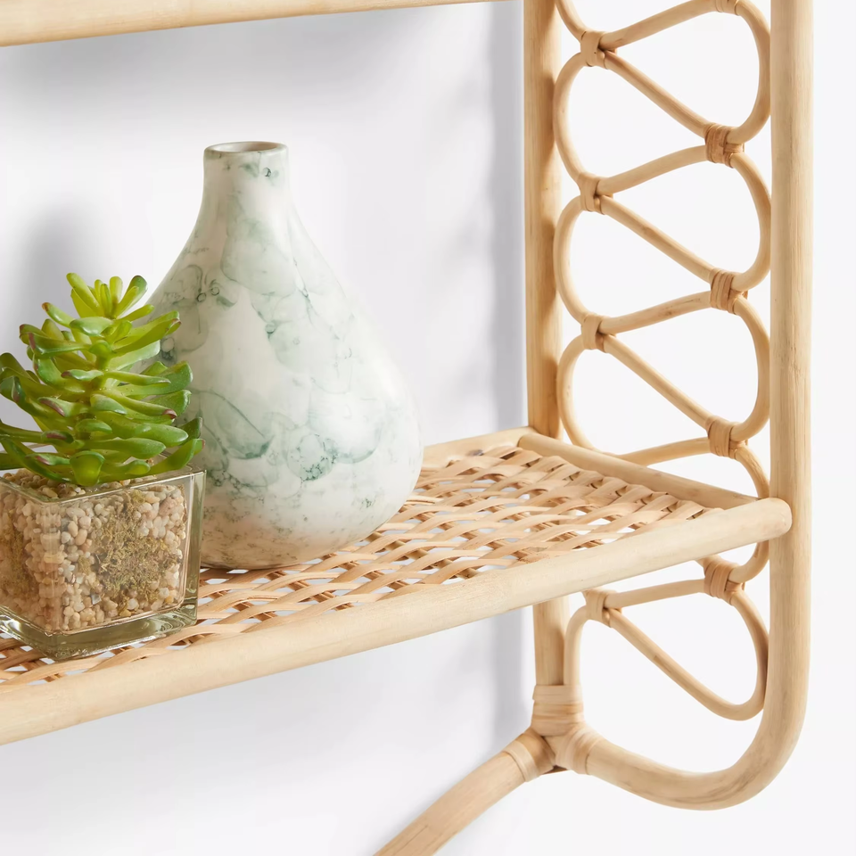 Rattan Wall Shelving Unit Natural:Size: D7,5 x W18,9 x H28 inch
