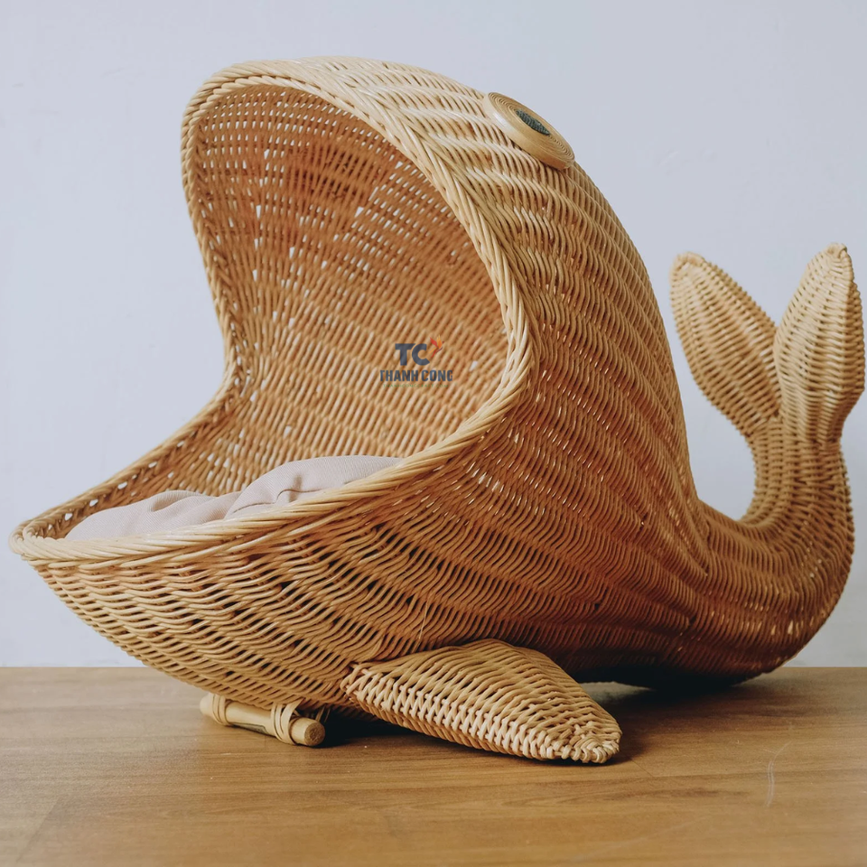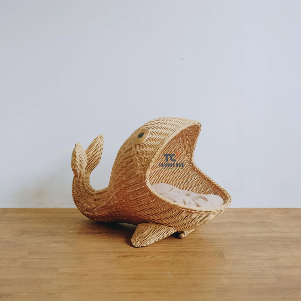Rattan Whale Shape Pet House Cute Comfortable Bed for Pets Dog Cat House