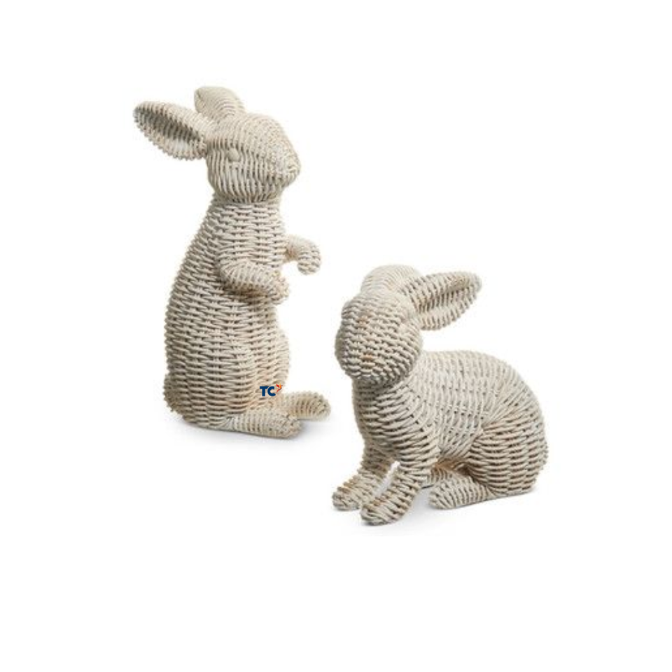 Rattan Wicker Bunnies Statue Rabbit Ornaments Figurine Animal Crafts Home Table Desktop Decor Sculpture From Thanh Cong
