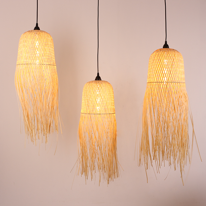 Rattan Wicker Hanging Lampshade Living Room Lamps Led Pendant Light for Bedroom Ceiling Lighting Modern Bamboo Lamp
