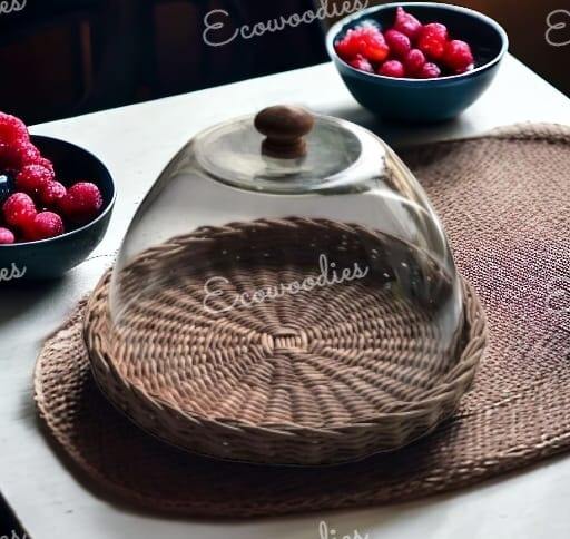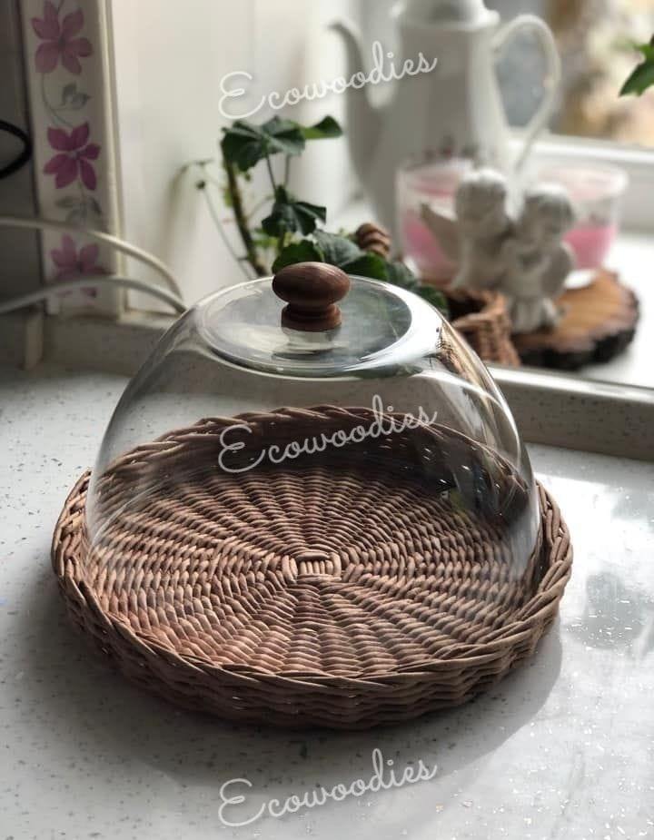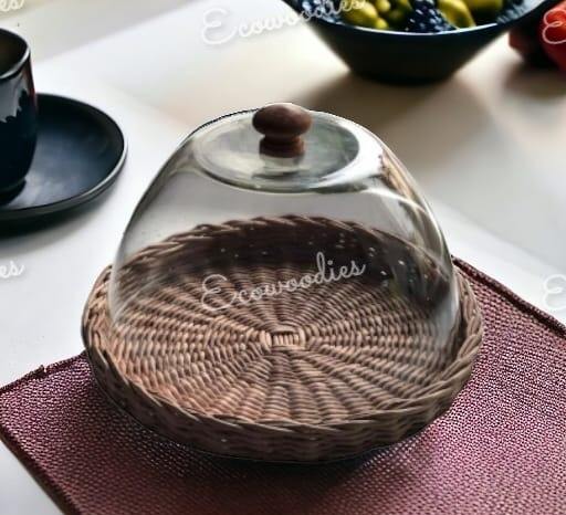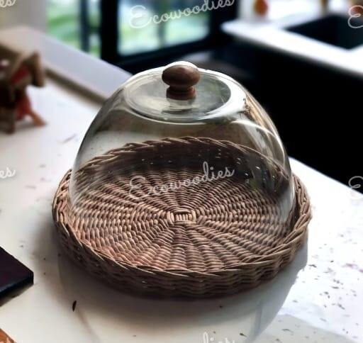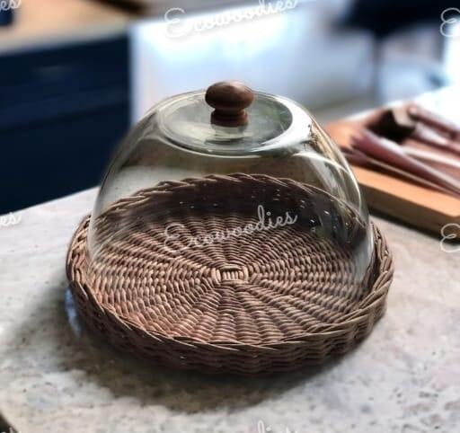 Dessert Server Cake Stand With Wooden Base And Glass Dome Lid