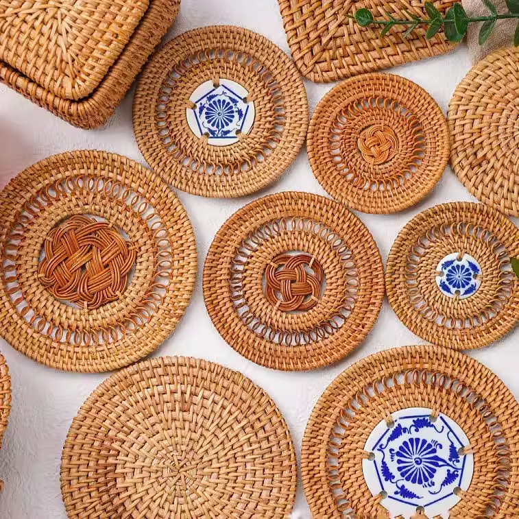 Rattan coaster:H 1cm x D 13cm