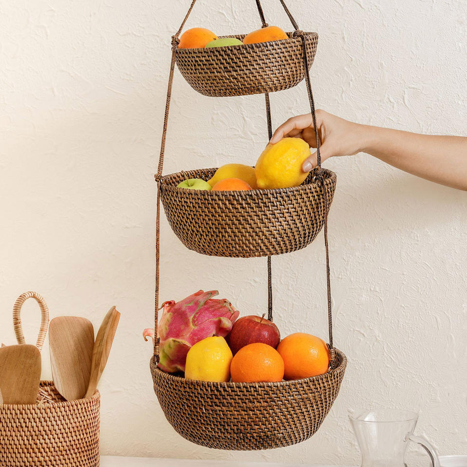 Rattan Fruit Hanging Basket Natural Crafts Wicker Hanging Baskets From Vietnam Lowest Price