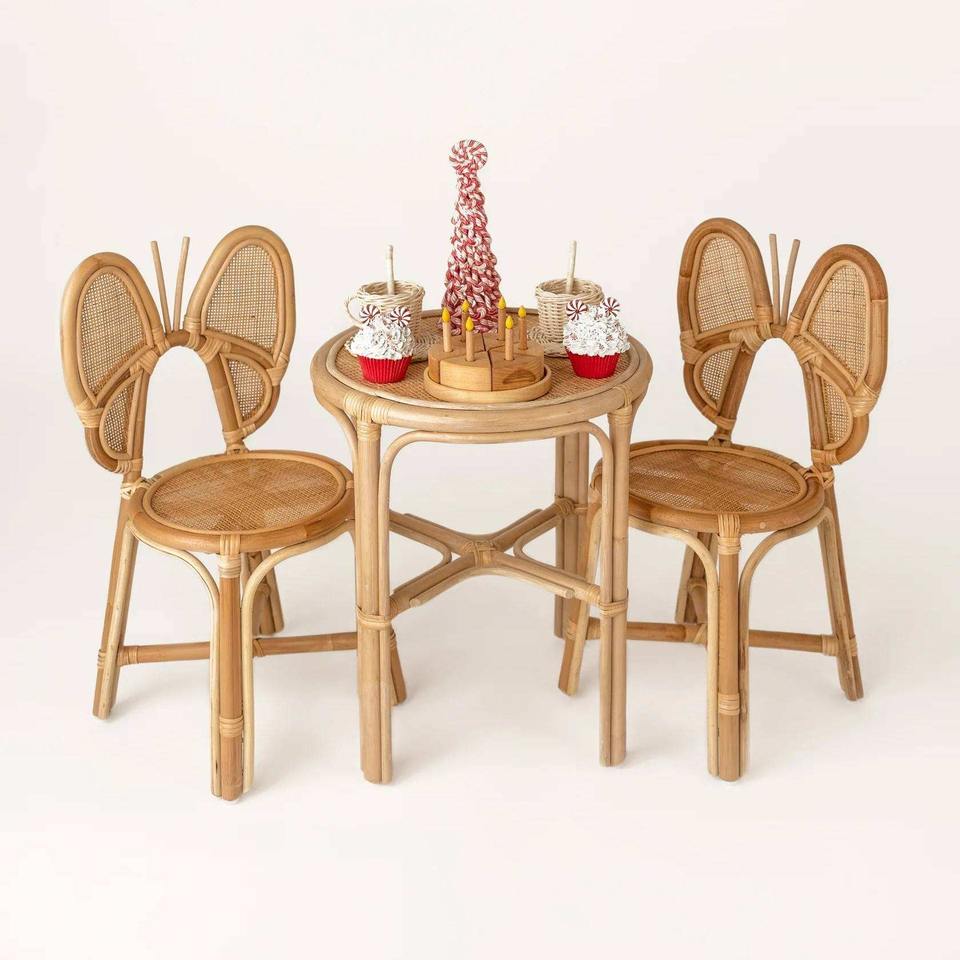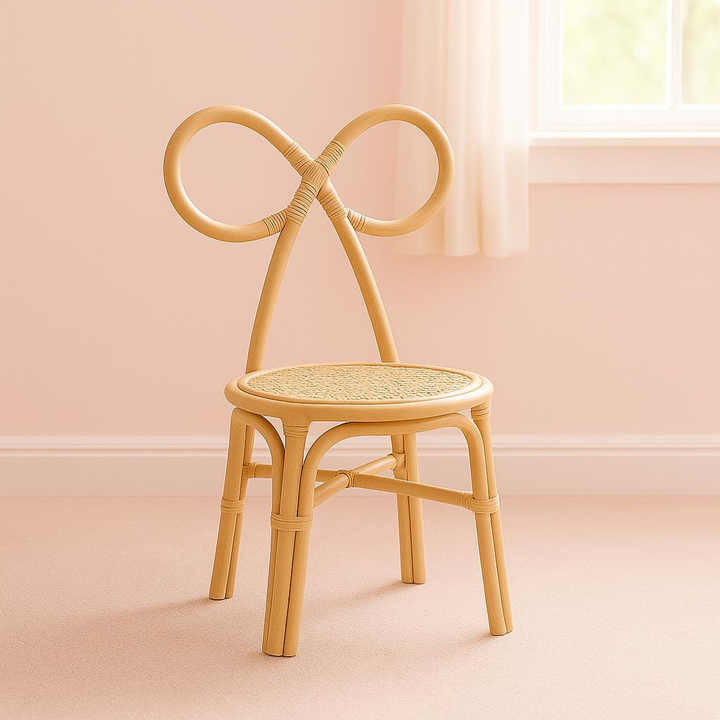 Rattan kids chair with bow-shaped backrest seating for toddler baby comfortable children chairs