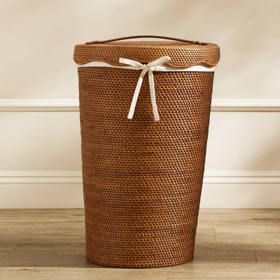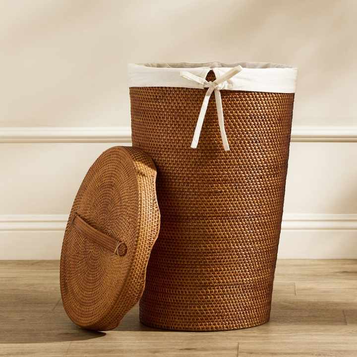 Rattan laundry hamper basket bins with cloth liner top selling storage bin hampers producer supply