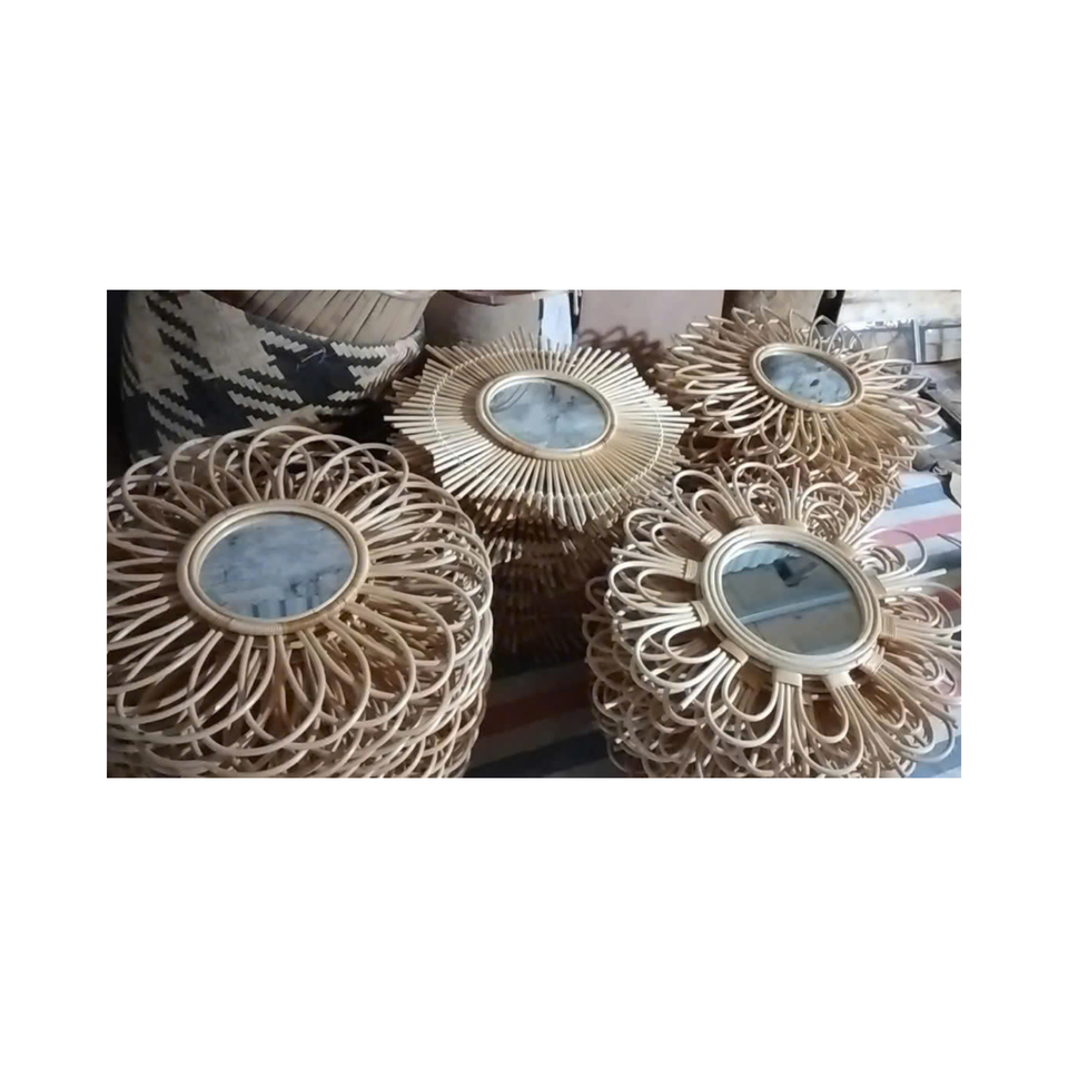 Rattan mirror decorative boho wall decor, wicker frame and glass, bedroom or vanity use, made in Vietnam, High quality