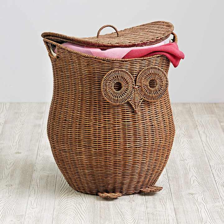 Rattan owl hamper baskets with removable lid highest quality baby basket nursery decoration