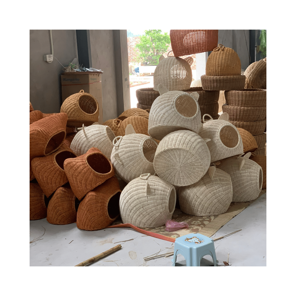 Rattan pet bed oval lounge, material: cane rattan with soft pillow; use: home decor resting; origin: Vietnam, factory