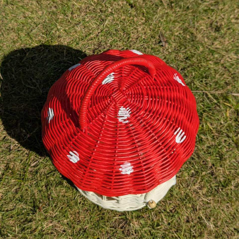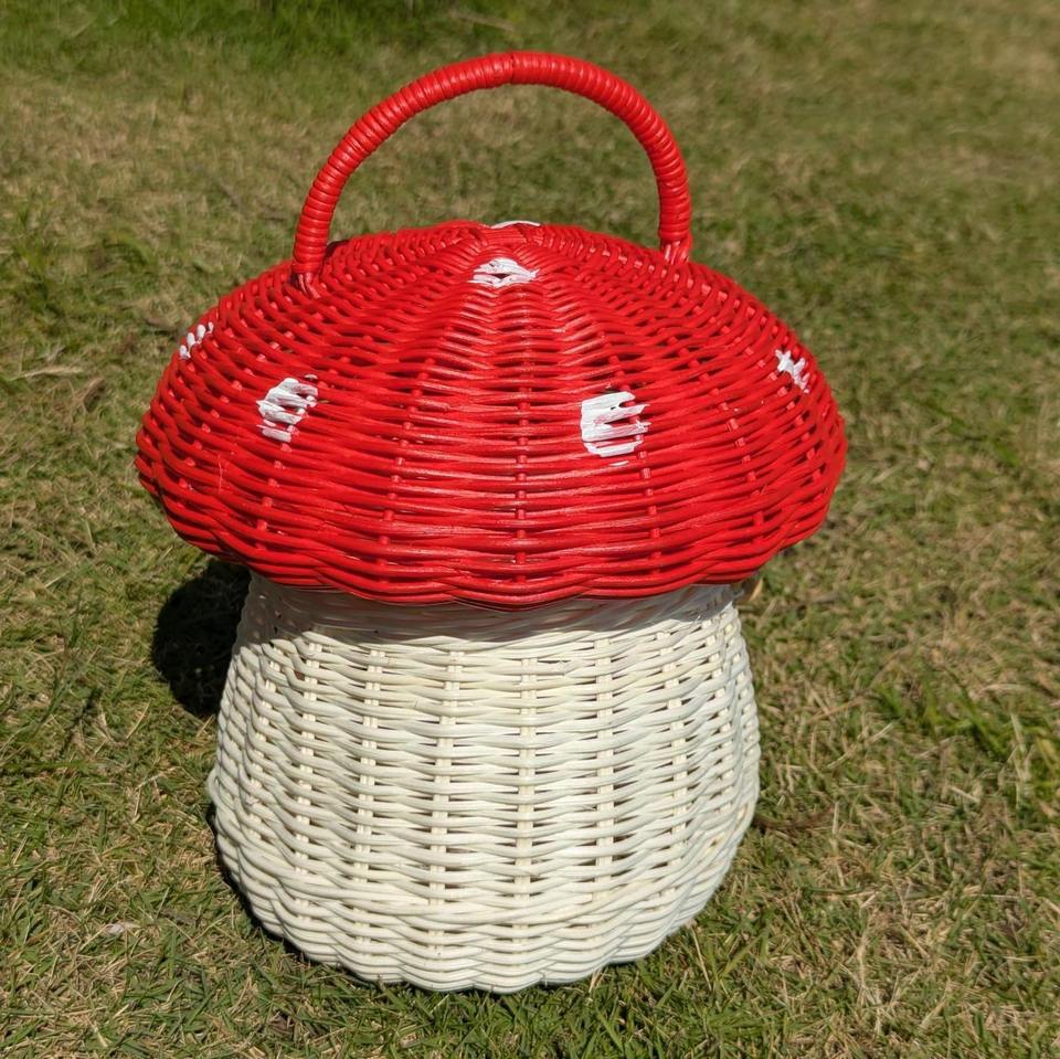 Rattan red mushroom house toy storage bag for kids cartoon toys handweaving handbags children's lunch bags