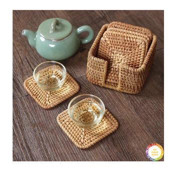 Rattan plate woven natural coaster mat for hot cup placement coffee shop bar accessories handmade decor from Vietnam