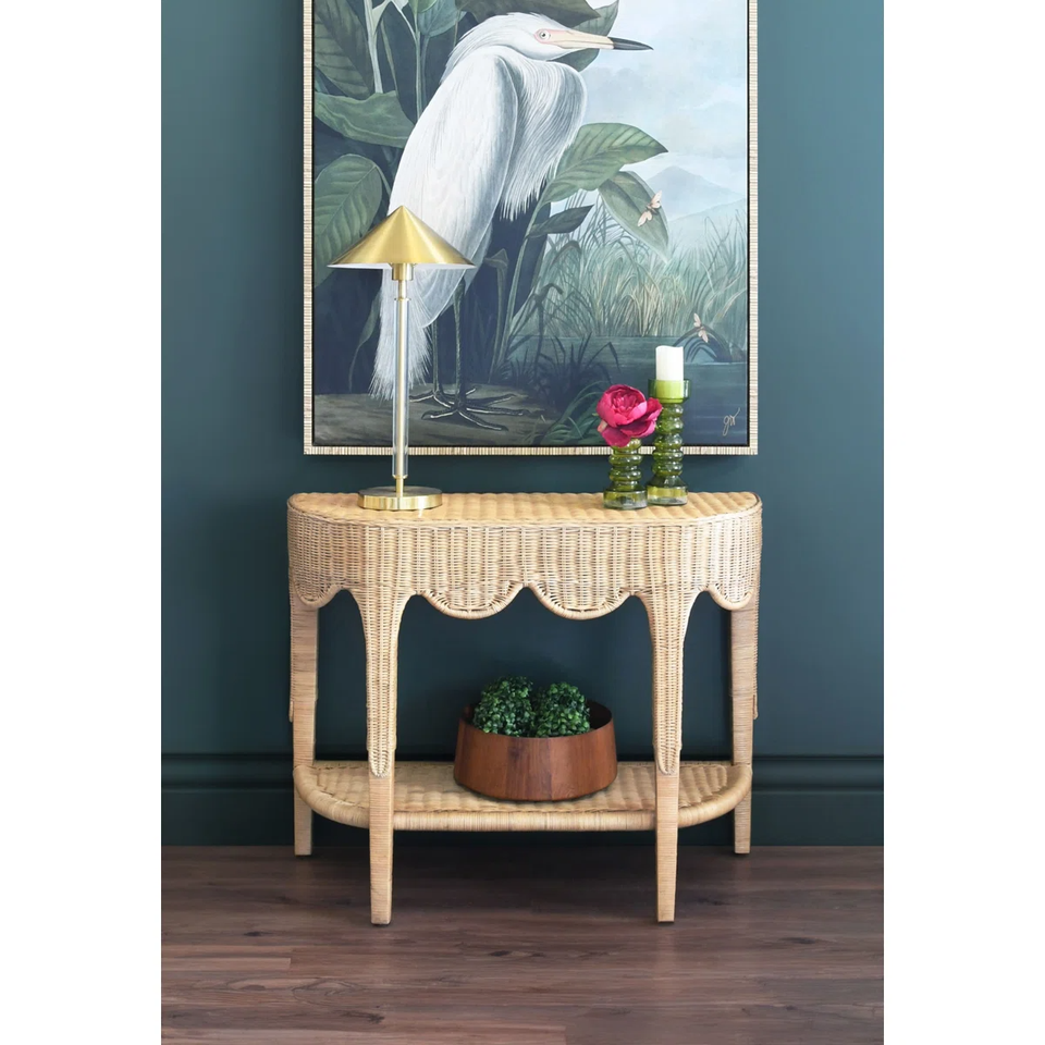 Rattan table against the wall:Size: 31.75'' H X 39.75'' W X 15'' D