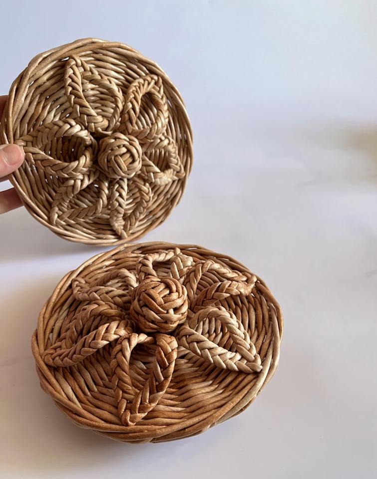 Name:Rattan toilet paper holder woven pattern lid Size: D6,5 x H10,6 inch