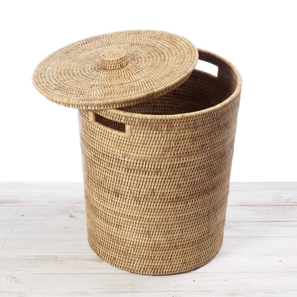 Rattan waste bins natural handweaving bin wholesale pricing storage container basket with lid
