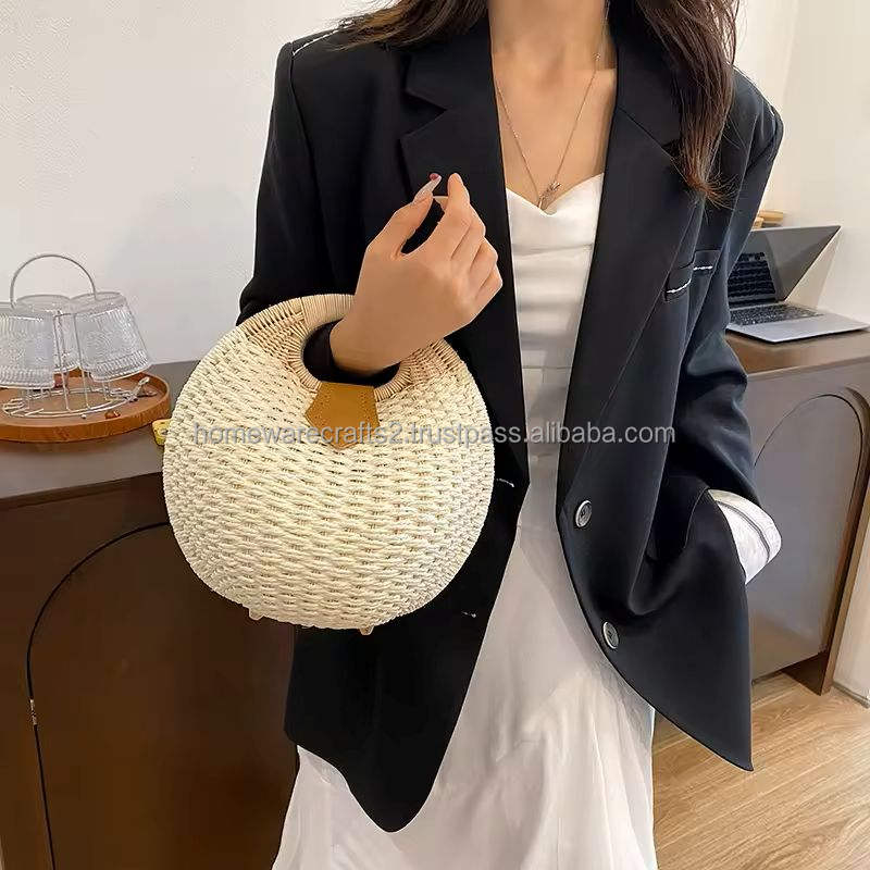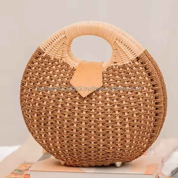 Rattan woven beach bag natural handmade carryall for vacation retailers wholesale supplier durable and gift ready from Vietnam
