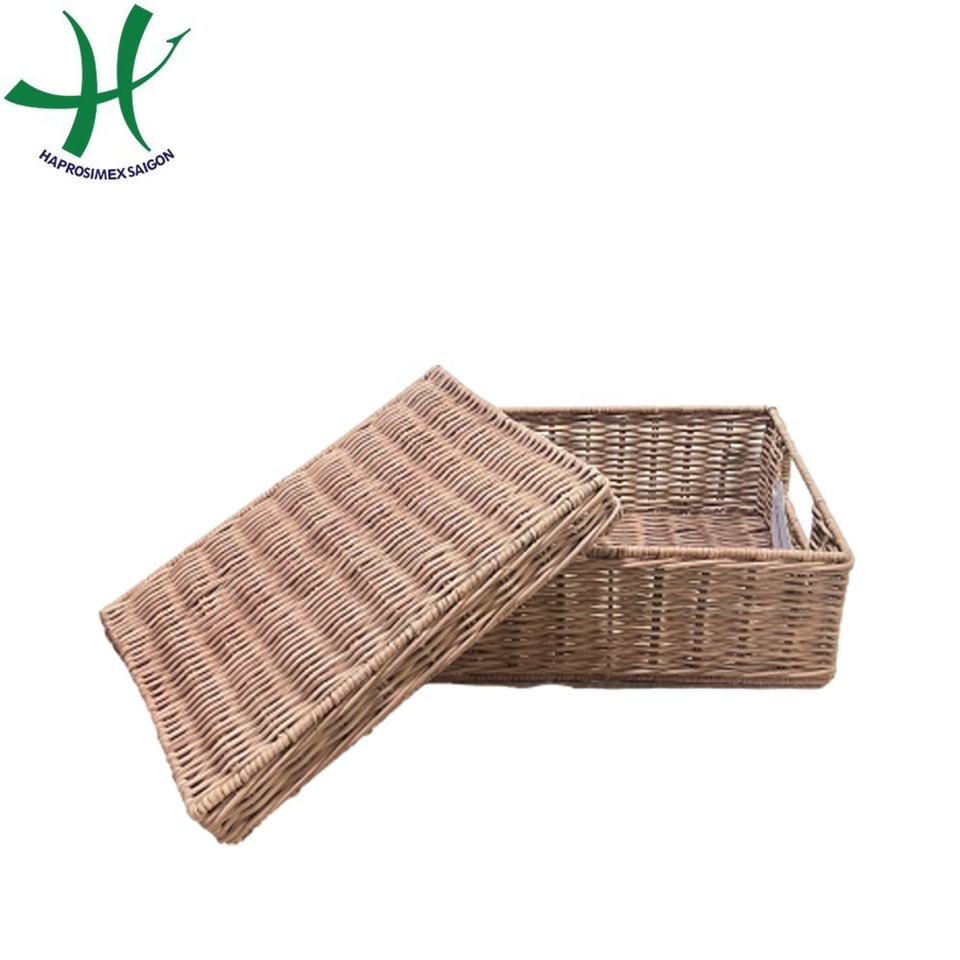 Rectangular Woven Rattan Storage Basket Bamboo and Wicker Tray for Food Sundries Laundry in Bathroom or Living Room