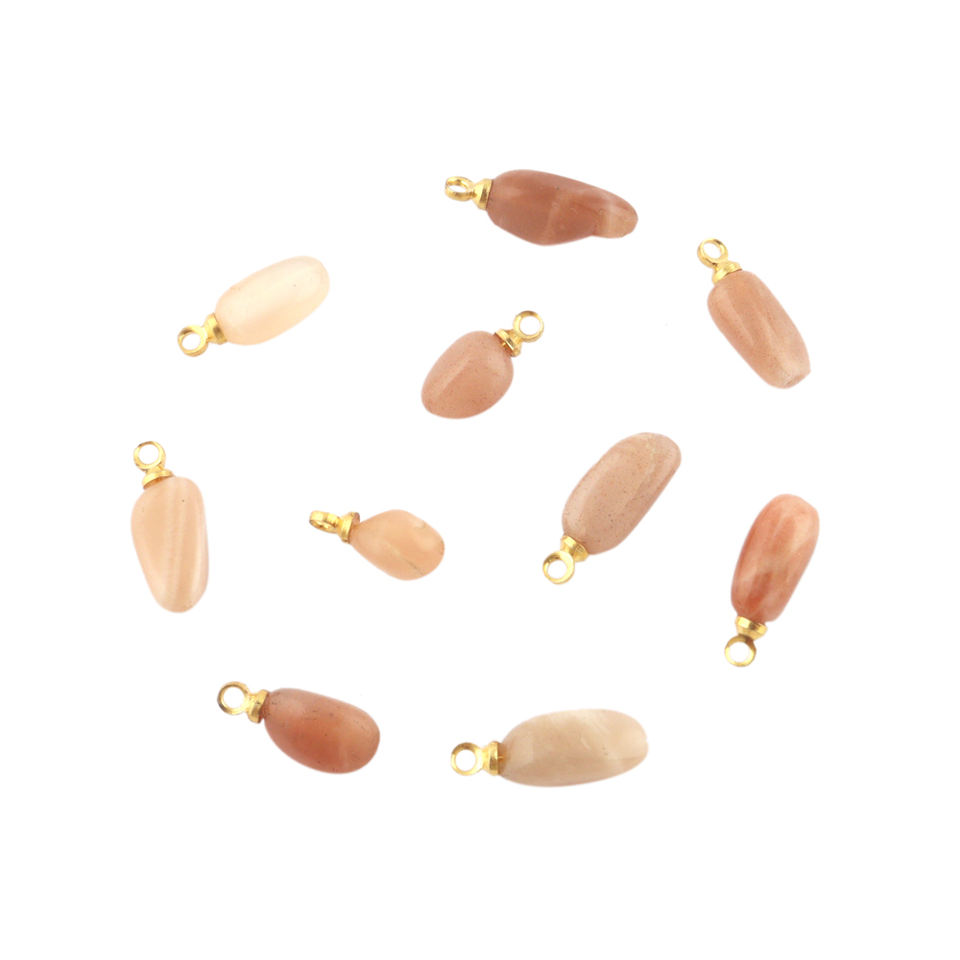 Ravishing charms natural peach moonstone diy pendant earring connector 18k gold plated top drilled single loop supply connectors